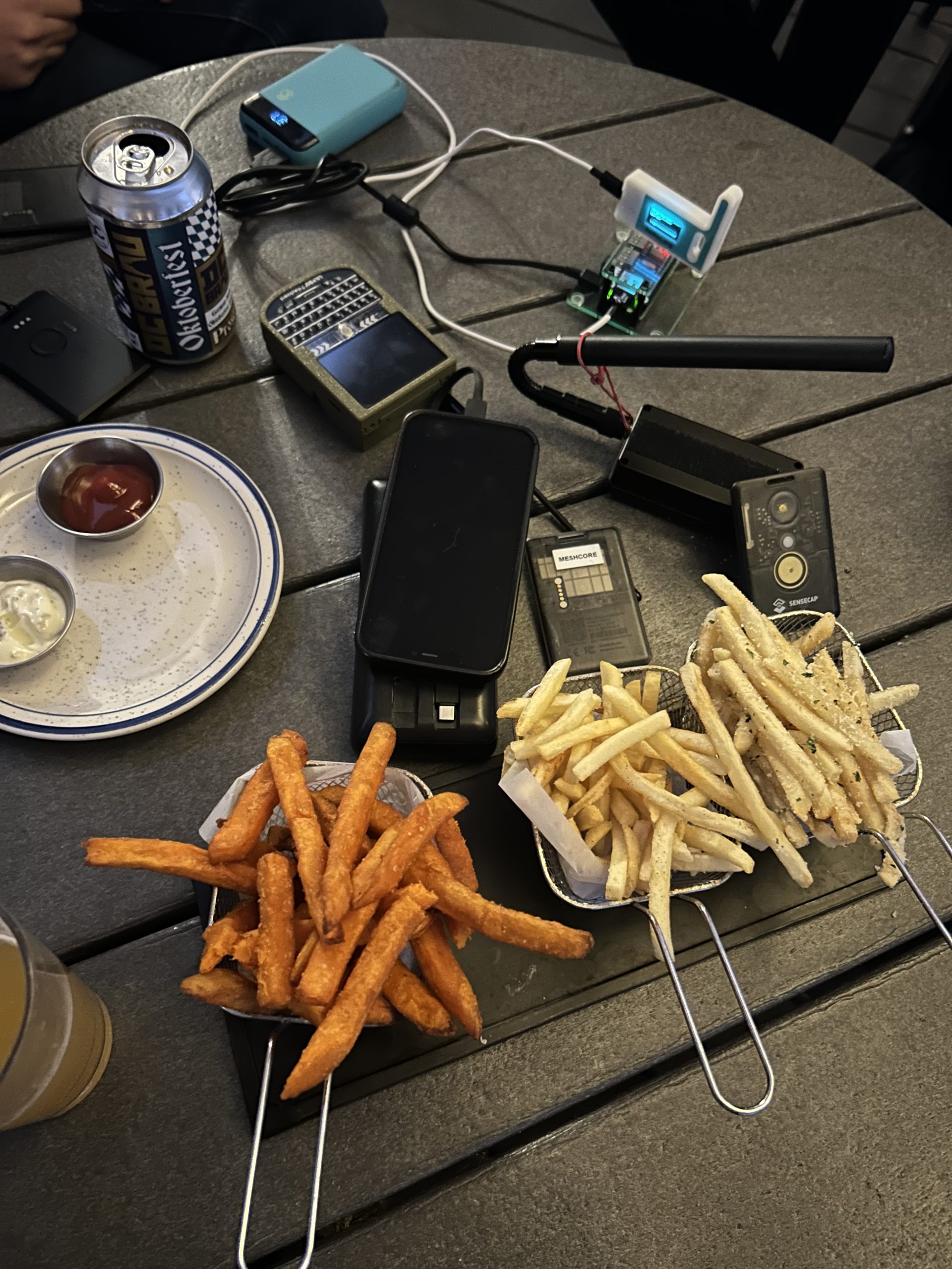 Great success with our 4th DC Mesh in-person meeting. We had seven members join us – thank you to everyone who made it out. Mike brought the Meshing Around BBS server which we all got to use in person with extremely low latency. We talked about syncing up the BBS servers, expanding the mesh towards Baltimore, and heard about varying experiences with the Slot 9 network in NoVa. One excellent idea that came out of the meeting was adding a bot to our discord that sends and receives messages from the network to a channel on the discord. We meet in person every quarter so we hope to see you all in a few months!